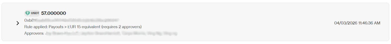 - The transaction will indicate how many approvals are still required (e.g., "1 of 3 approvers have approved this payment").
