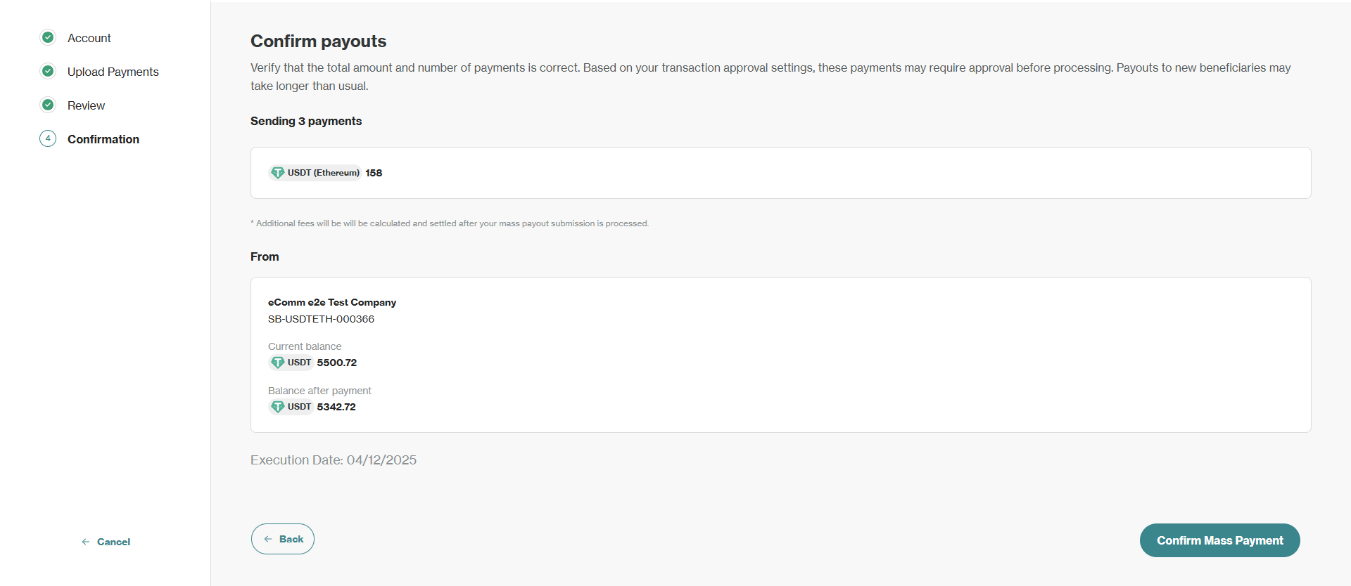 - Click Confirm Mass Payout to proceed.