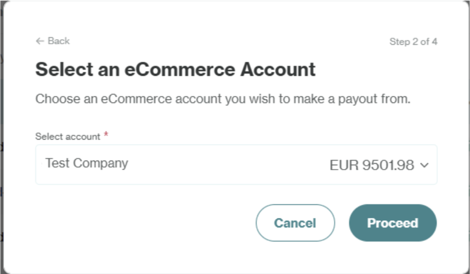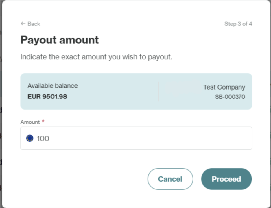 - After entering all relevant fields, click Proceed to initiate the payout.