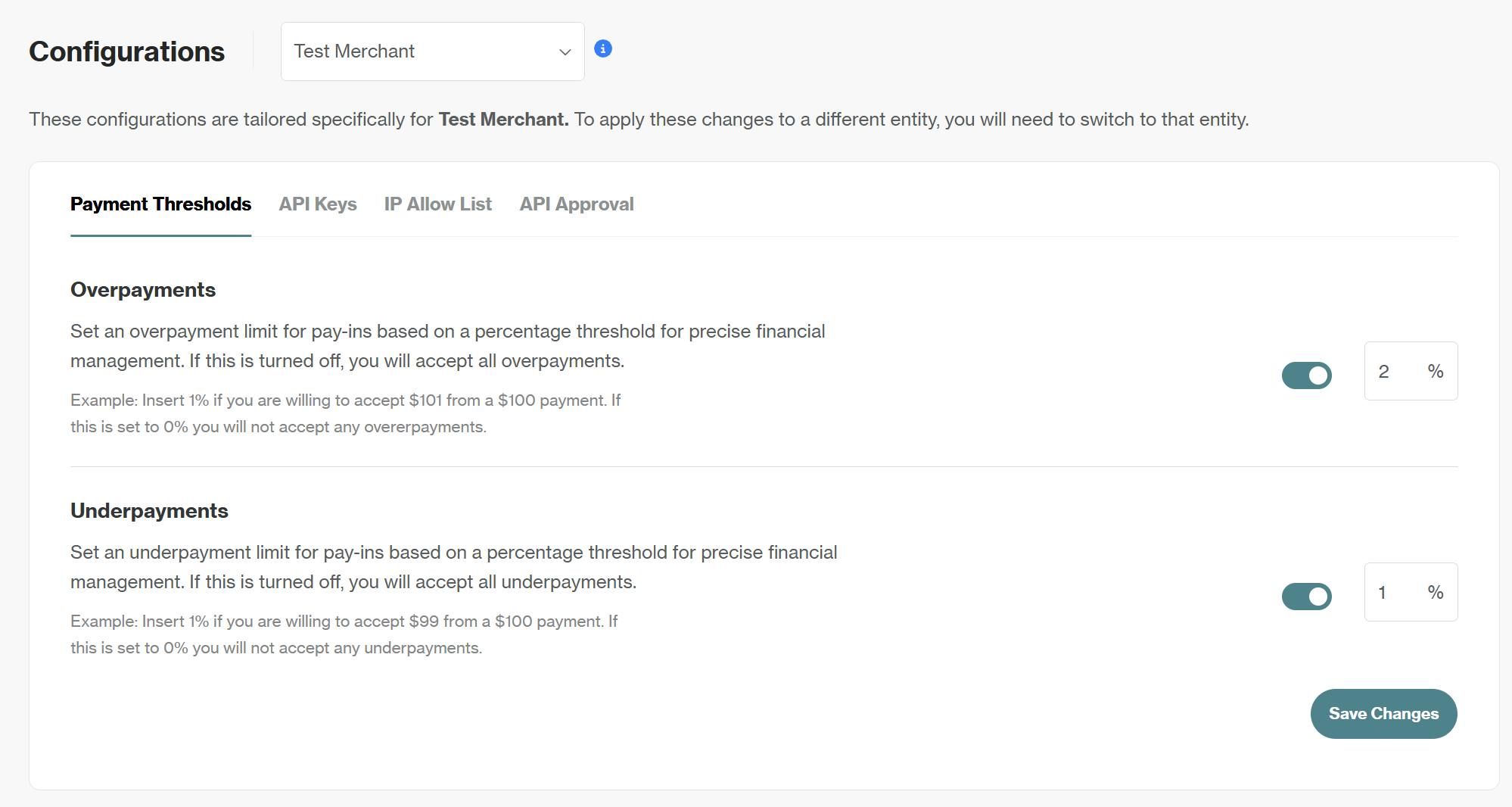 Once saved, your thresholds define how incoming pay-ins are handled, giving you more control over payment variances.
