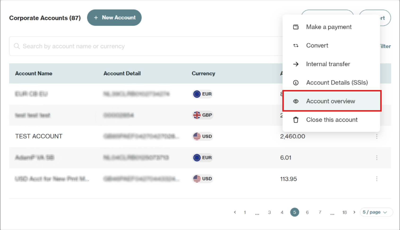 - For the specific account you want to review, click the three-dot menu (ellipsis).