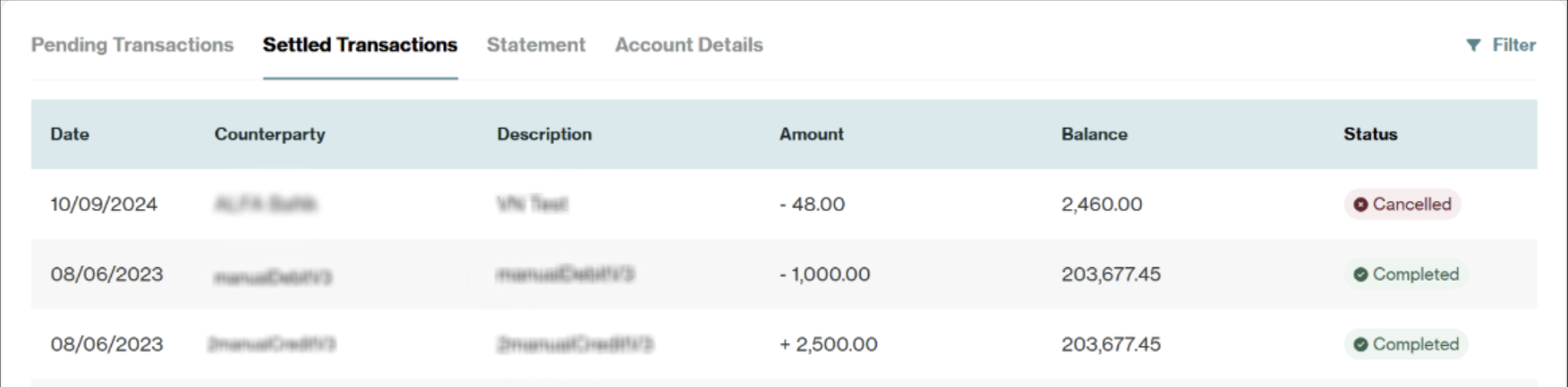 Settled Transactions: Settled transactions are payments that have been finalized and posted to your account balance, or cancelled.