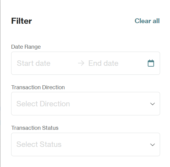 - Click Filter (or a similar button, typically in the top right of the transaction list).