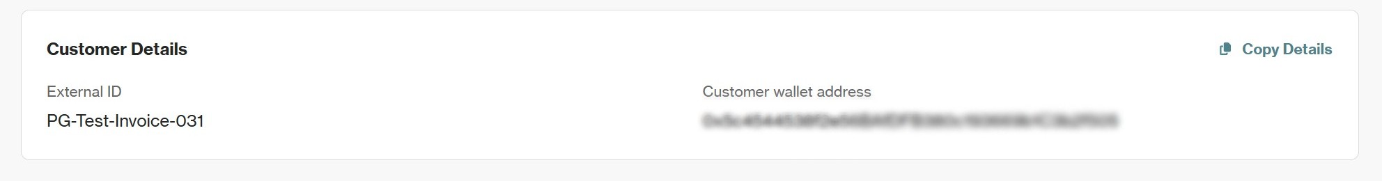 - Customer wallet address: The wallet address associated with the customer.