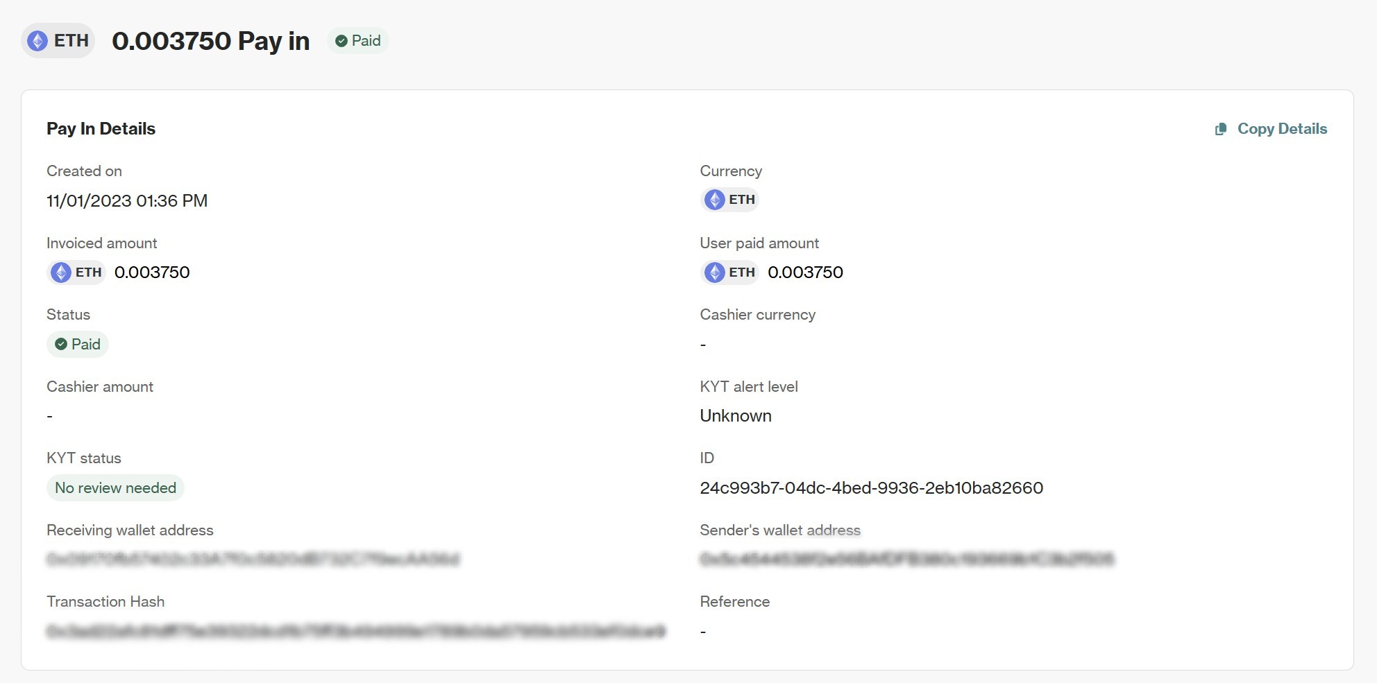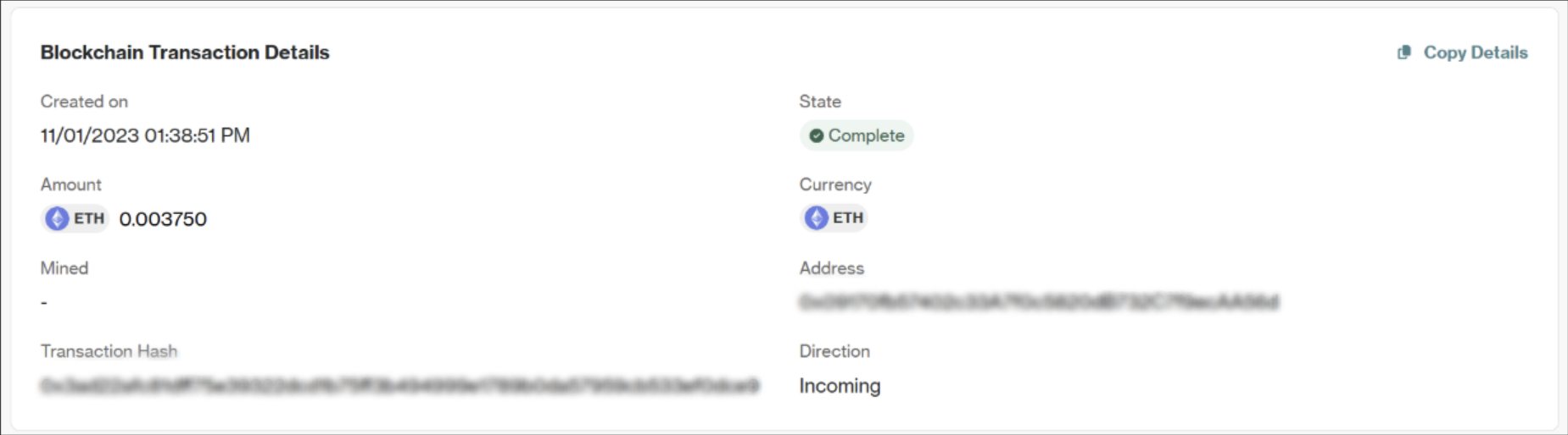 Blockchain Transaction Details