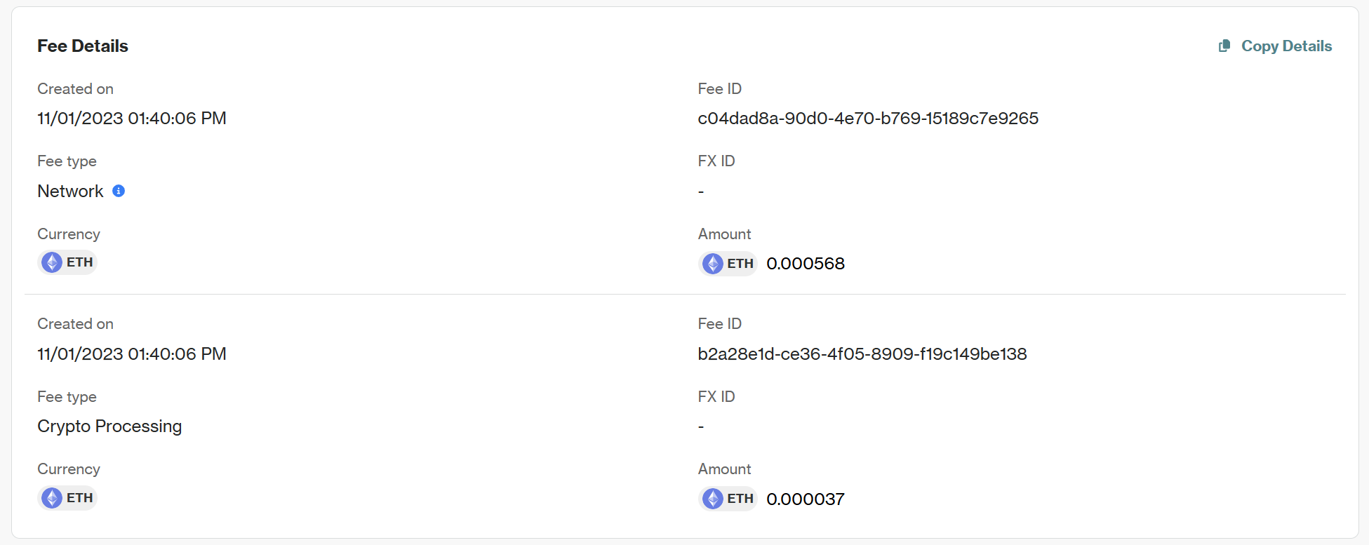 - Currency: The currency in which the fee is charged.