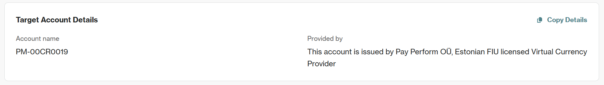 - Provided by: The entity providing the account (e.g., Pay Perform Digital Ltd).